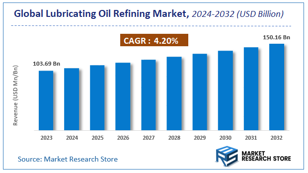 Market Research Store a leading global market research and consulting firm, today announced the publication of its in-depth research report on the Global Lubricating Oil Refining Market. The report projects the global lubricating oil refining market to reach a substantial USD 150.16 billion by 2032, growing at a Compound Annual Growth Rate (CAGR) of 4.2% from its 2023 value of USD 103.69 billion. The comprehensive study provides a detailed analysis of the market landscape, key trends, growth drivers, challenges, and opportunities shaping the future of the industry. This research offers stakeholders a detailed, step-by-step understanding of the lubricating oil refining market, empowering them to make informed strategic decisions.