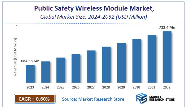 Market Research Store a leading market research and consulting firm, has published a new, in-depth research report on the Public Safety Wireless Module Market. The Market was valued at USD 684.53 million in 2023. It is projected to reach USD 722.4 million by 2032, growing at a CAGR of 11.2% from 2024 to 2032.The report provides a detailed analysis of market dynamics, trends, opportunities, and challenges, offering valuable insights for industry stakeholders.