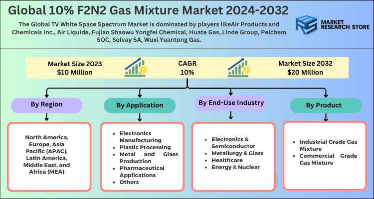 The global 10% F2N2 gas mixture market is divided by product, application, end-use industry, and region.